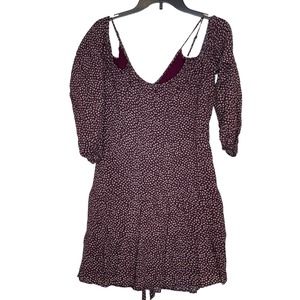 Paige Carmine Women Top Cold Off Shoulder Tie Front Ditsy Floral Dress Red Small
