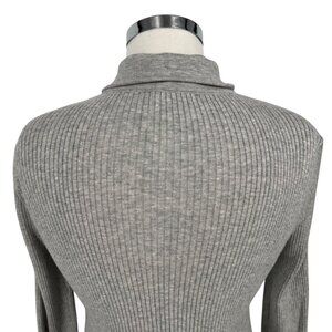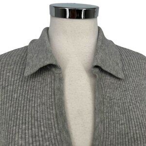 Paige Catarina Ribbed Collared Fitted Sweater Chromium Gray Size Large