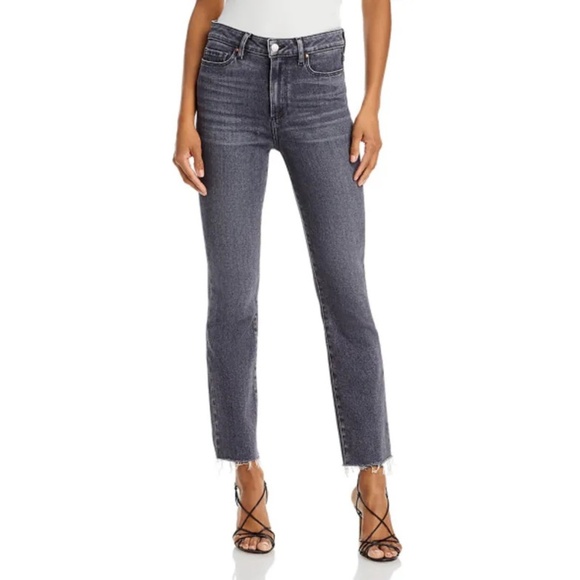 Paige Cindy High Rise Ankle Fray Straight Jeans Ash Black Size 25