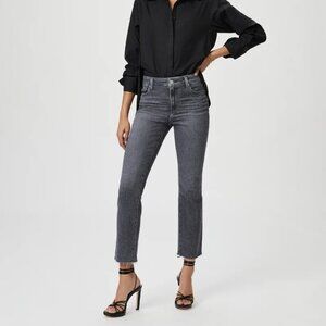 Paige Cindy High Rise Straight-Leg Raw Hem Jeans in Ash Black Dark Gray Size 28