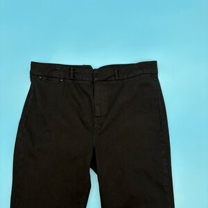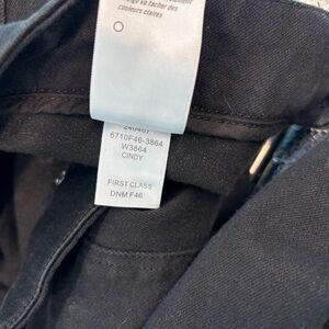 The Paige Cindy Black Jeans are a stylish and comfortable pair of jeans from the trusted brand Paige. These solid black jeans feature a high rise waist and a regular fit, making them perfect for all seasons. Made from a cotton blend denim fabric with a dark wash, these jeans have a zip closure and button accents for added style. The straight leg design provide a flattering silhouette, while the machine washable care instructions ensure easy maintenance. Perfect for any occasion, these jeans are a versatile and essential addition to any woman's wardrobe.