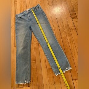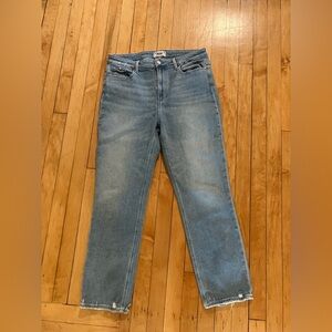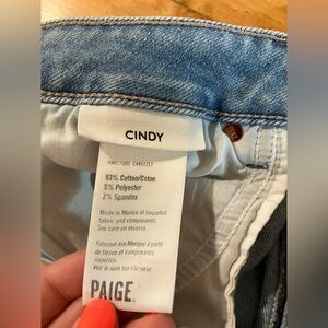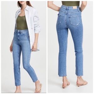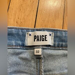 Size 32 Paige jeans in the Cindy style and Lovesong wash. Straight leg slim fit with minimal distressing. Great denim for spring! Check out the pictures for measurements.