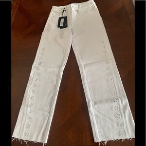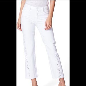 Paige Cindy laser daisy raw hem ankle jeans size 23 in white, NWT