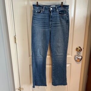 Gently flared raw hems make these Paige jeans a stylish wardrobe staple, featuring a flattering high-rise fit, zipper fly closure, and soft stretch denim fabric. Pair them with everything from a tee and sneakers to a tank and wedges.