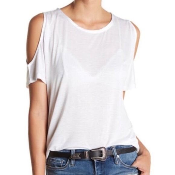 Paige Cold Shoulder Optic White Shirt Women's Small