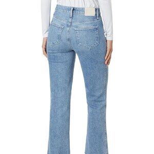 Paige denim, ankle flare jeans, raw hem jeans, distressed light wash denim, Khristen wash, vintage-inspired jeans, NWT designer jeans, everyday denim, trendy raw edge, high-rise jeans