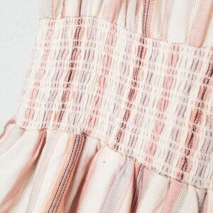 This fun and flirty mini is covered in soft stripes with ruffled-and-smocked accents for everyday charm.