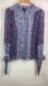 Constructed from a lilac, floral printed silk georgette this piece features a centre front button opening, long sleeves with a self tie cuff and is finished with a rounded ruffled neckline.