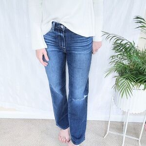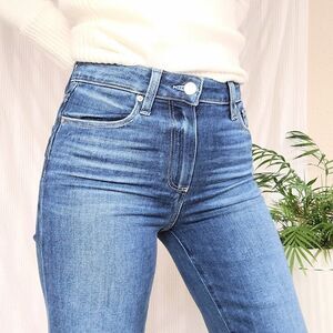 Paige Denim Atley Ankle Flare Distressed Jeans Lookout Blue Wash Waist Size 25