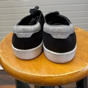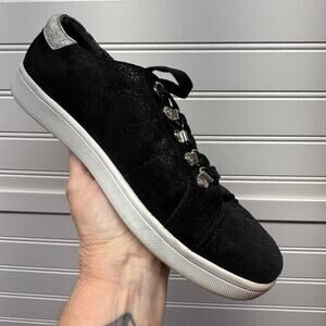 EUC is a pair of Paige Denim Ava sneakers in black suede with silver glitter heel.