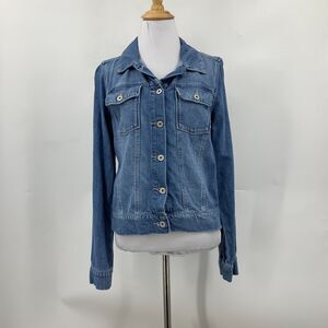 PAIGE DENIM JACKET WOMENS XS EXTRA SMALL BUTTON UP COLLARED FLAP POCKET COLLAR