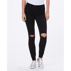 Paige Denim NWT Verdugo Distressed Raw Hem Ankle Jean in Black Domino // 00