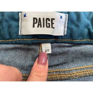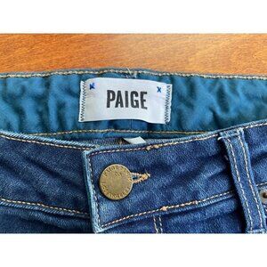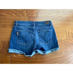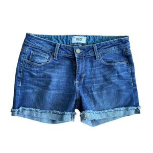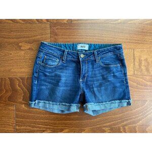 Paige Denim Roll Tab Jean Shorts Blue Dark Wash Stretch Mid-Rise Grunge Sz 27