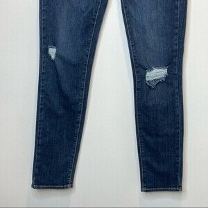 These jeans are preowned but still in great shape does not have any puckering. They are slightly distressed. The back right leg does have extra white spots which appears to be part of the