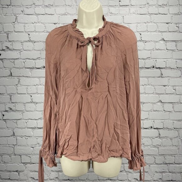 Paige Dusty Pink 100% Silk Long Sleeve Flowy Blouse Top Keyhole Flowy Size XS