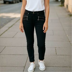 Paige Edgemont Double Zipper Mid-Rise Skinny Jeans, Black, Size 26