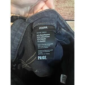 Paige Federal Straight Leg Crop Capri Jeans Mid Rise Dark Wash Denim Zipper Fly