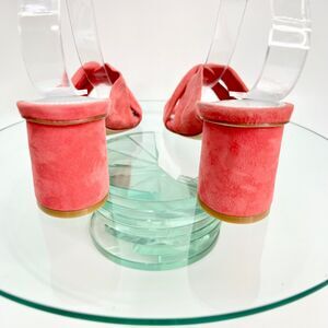 Paige Francesca Sandals Womens Pink Suede Leather Heels Slip On Cross Straps
