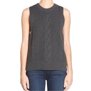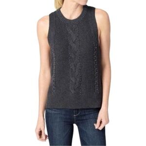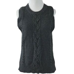 Paige Guinevere Wool Cable Knit Beaded Sweater Vest Charcoal Grey Pearls Small