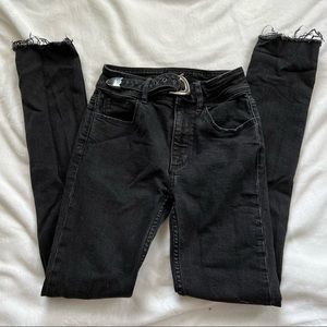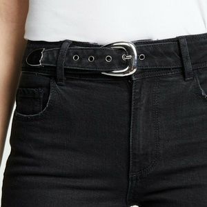 Kick some Western flair into any ensemble with perfectly faded jeans fitted with a shiny belt that highlights the flattering high waist.