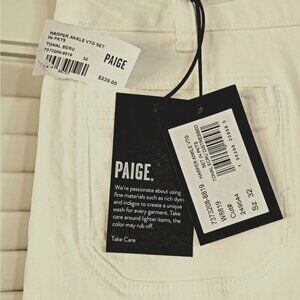 Paige Harper High Waist Wide Flared Leg Ankle Vintage Distressed White Jeans 32W