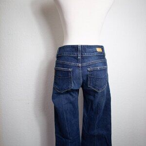 Beautiful dark wash designer Paige Hidden Hills high rise boot cut jeans, size 27 waist 32 length. Like new condition!