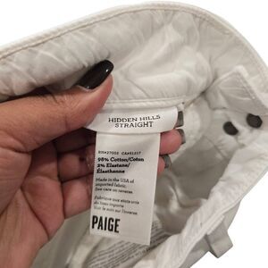 Paige, Modern, Straight, Cotton, Spandex, Denim, Pull-On, Hipster, Zip Fly, Stretch, Workout, Fall, Summer, Spring, Winter. Paige Hidden Hills Straight Jeans Women's 26 White Denim Stretch Zip Fly Hipster.