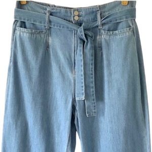 Paige High Waist Self Tie Wide Leg Cropped Denim Pant Size 32