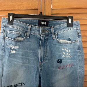 Paige Hoxton Ankle Caprice Embroidery Vintage 90s Punk Blue Ripped Jeans Sz 29