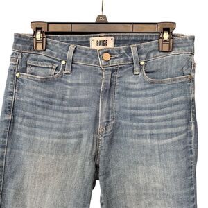 Keywords: Paige jeans, women's jeans, high-rise, skinny jeans, ankle jeans, blue denim, casual wear, 5-pocket, button closure, zip fly, medium wash, comfortable fit