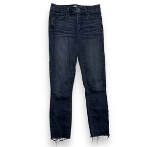 These ankle-length jeans are tapered for a comfortable fit and have raw edges.