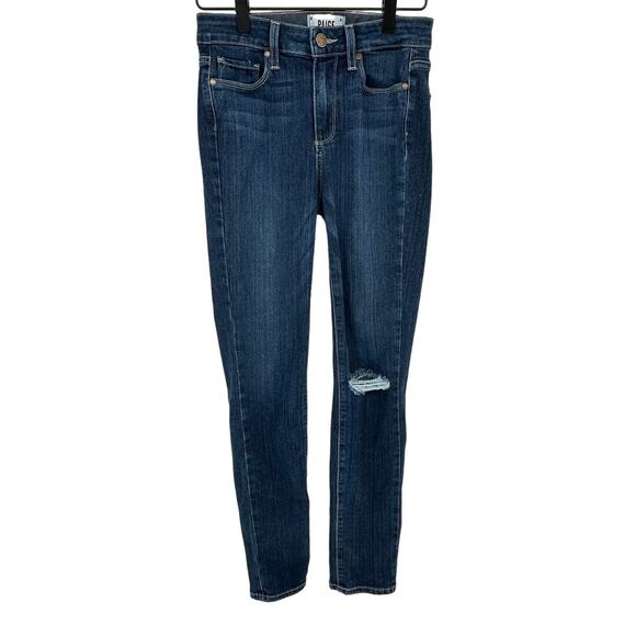 Paige Hoxton Crop Rollup Skinny Jean Mid Rise Blue Dark Wash Stretch Casual 25