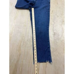 The product is a pair of Paige Jeans in size 30, featuring a slim fit and a crop style with a dark wash and raw hem. The jeans are distressed to give a unique and trendy look. Made for women, these jeans are a stylish addition to any wardrobe, perfect for a casual yet fashionable outfit.