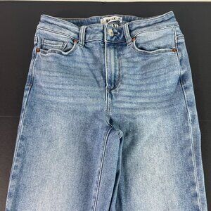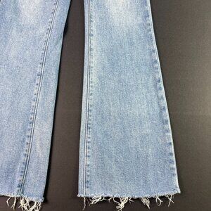 Style- Jeans Laurel Canyon High Rise Flare Light Blue Faded Raw Hem Stretch Denim