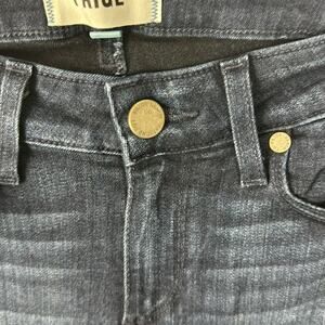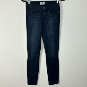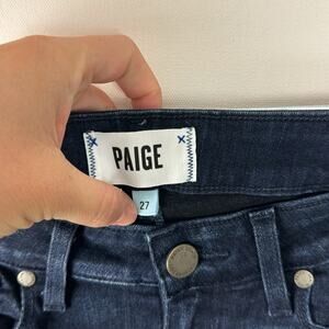 Gently Used Paige Verdugo Crop Jeans. These are a women's 27. Darker blue denim color throughout. Skinny fit with little to no distressing. Silver button accents. Super soft! 54% rayon, 23% cotton, 22% polyester, 1% spandex.