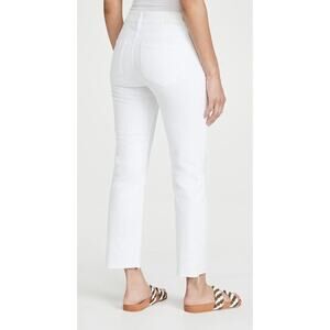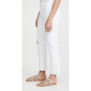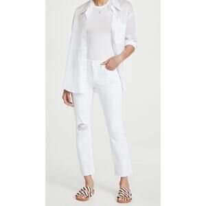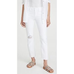 The perfect white denim to take you through summer! Very comfortable and versatile for travel friendly events. Pair with a button down shirt, tan blazer, add heels or flats….voila! Off you go with confidence, ease and comfort! Paige is known for its wear tested timeless fit and for the iconic whip stitching on the back pocket. Did you know?….this symbolizes nine lives and the drive to stay constantly evolving. Who can’t love that!?! This jean is a mid-rise tailored boyfriend jean with a raw cuffed hem that hits above the ankle. It is made with 98% cotton and 2% elastane. Machine wash Imported White wave distressed