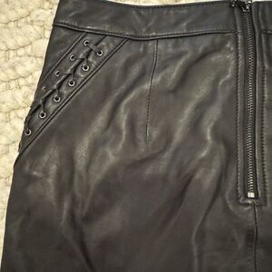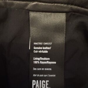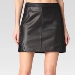 The Paige Johanna Leather Mini Skirt in size small is a stylish and edgy piece of women's clothing. Made from high-quality leather, this skirt is designed to hug the curves of the wearer and showcase their legs. The mini length adds a touch of daring to any outfit, making it a versatile and on-trend addition to any wardrobe.