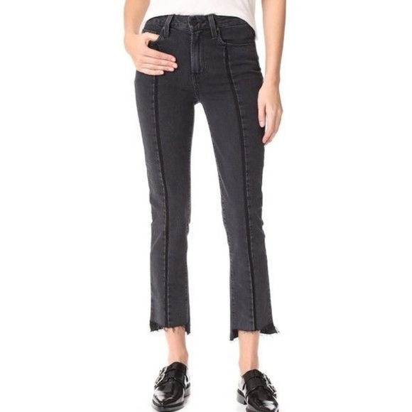 A pleated accent on the legs and uneven hem on the ankles add custom styling to this classic pair of jeans. - Zip fly with button closure - 5-pocket construction - Seam detailing throughout - Pleat accent on leg center - Uneven, ripped hem - Approx. 10" rise, 28" inseam