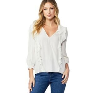 Paige Kaydynn Blouse Womens Medium White Ruffled Pullover Top Shirt Boho Cottage