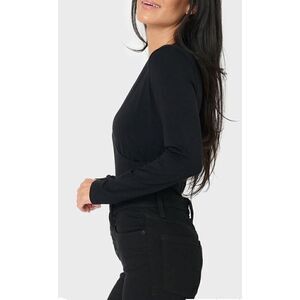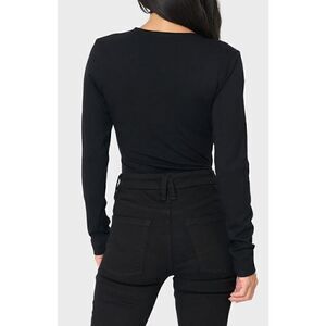 Paige Kinsey Surplice Long Sleeve Soft Pointe Bodysuit in Black NWOT Size Small