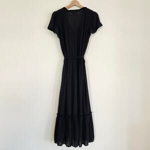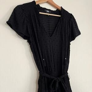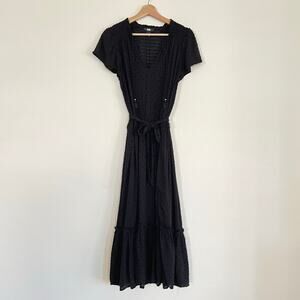 Paige Laramie Black Tie Waist Midi Dress Medium V-Neck Short Sleeve