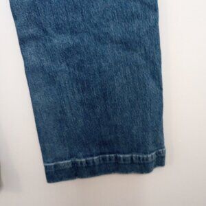 Measures (flat) approx. 13" across the waist, 9.5" front rise, 31" inseam, 9" leg opening.