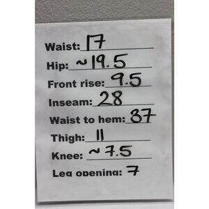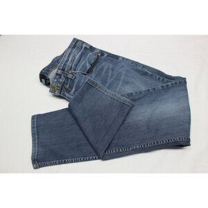 Pre-owned item with signs of use/wear: has fading, whiskering. There are some dark spots on the back at seat, but garment remains intact and has plenty of life left. Turning of the pocket edges present from storage.