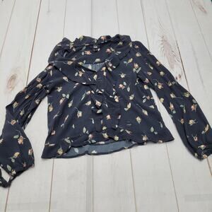 Lovely Paige "Russo" ruffle front blouse! V neck with an allover rosebud print and a romantic fit. Gently worn, size medium.