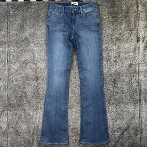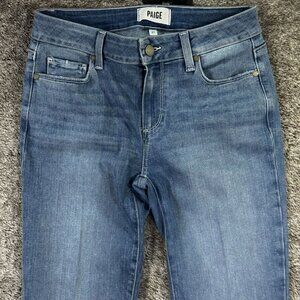 A universally flattering mid-rise style with a fitted silhouette through the hips and thighs, and a slim bootcut from the knee down. PAIGE VINTAGE takes all of the work out of breaking in your favorite pair of vintage jeans. We've combined the comfort of stretch with everything you love about authentic vintage denim to create super soft jeans that feel perfectly lived-in from the very first wear.