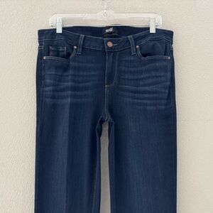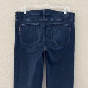 Paige Manhattan Jeans High Bootcut Flare Dark Wash Stretch Denim Blue Classic 32