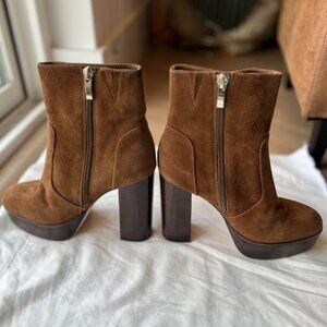 Paige Maren Soft Kid Suede Brown Heeled Boots with Chunky Platform - Size 6