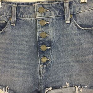 Paige Margot Button Fly Denim Frayed Raw Hem Cut Off Shorts Blue Size 28