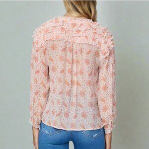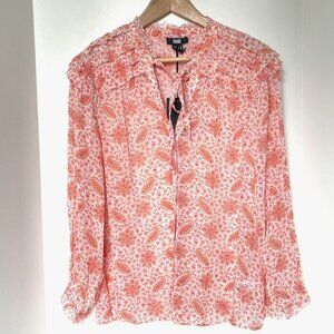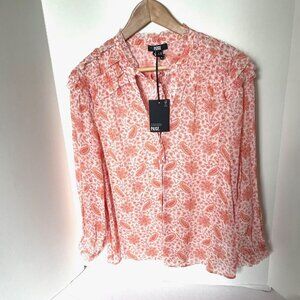 Paige Margret Paisley Frill Silk Georgette Shirt Medium Long Sleeve Sherbert