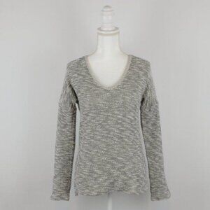 Paige Martine Women's Small Cream Gray V-Neck Tight Knit Sweater